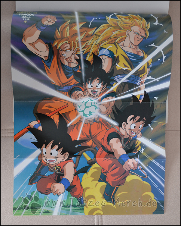 Wie bei den Vorgängern – Band 1 und Band 2 – ist auch hier das Cover als Poster vorne eingeklebt und hat auf der Rückseite ein Bild von Son-Gokus verschiendenen „Entwicklungsstufen“.