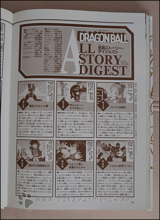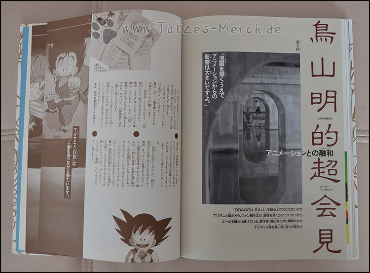 Den Schluss des Artbooks macht ein in sepia gedrucktes Super Interview mit Akira Toriyama über den Anime und eine Übersicht über alle Folgen (zumindest alle, die in dem Artbook versammelt sind – Dragon Ball Folge 1 bis 153 und Dragon Ball Z Folge 1 bis 74).