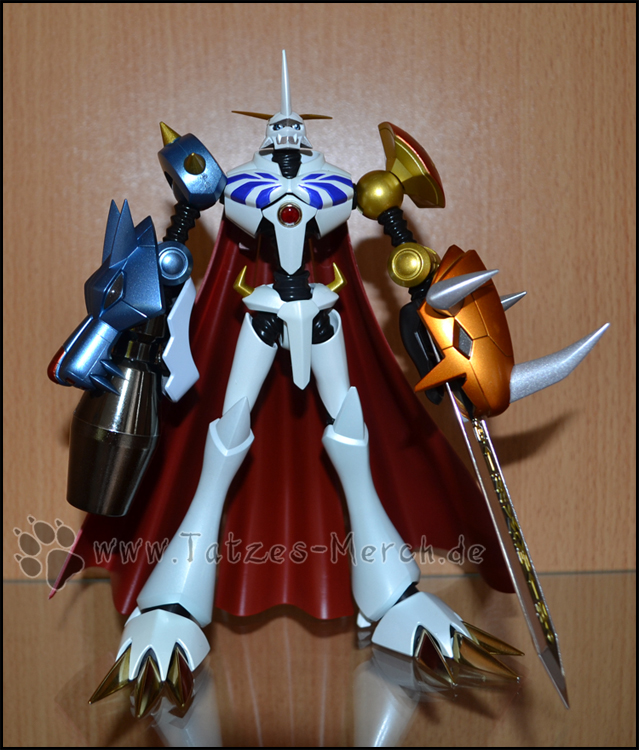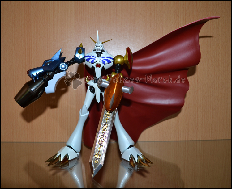 Zieht man Omegamon jedoch den zweiten Umhang an, dann verteilt sich das Gewicht gleichmäßiger und man kann es leichter positionieren und in Pose bringen ;)