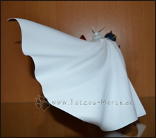 Man kann hier zwar mit den Armen arbeiten, um es auszugleichen, aber 100% gerade kriegt man es nicht hingestellt – außer man verwendet den zweiten Umhang, aber dazu später ;)