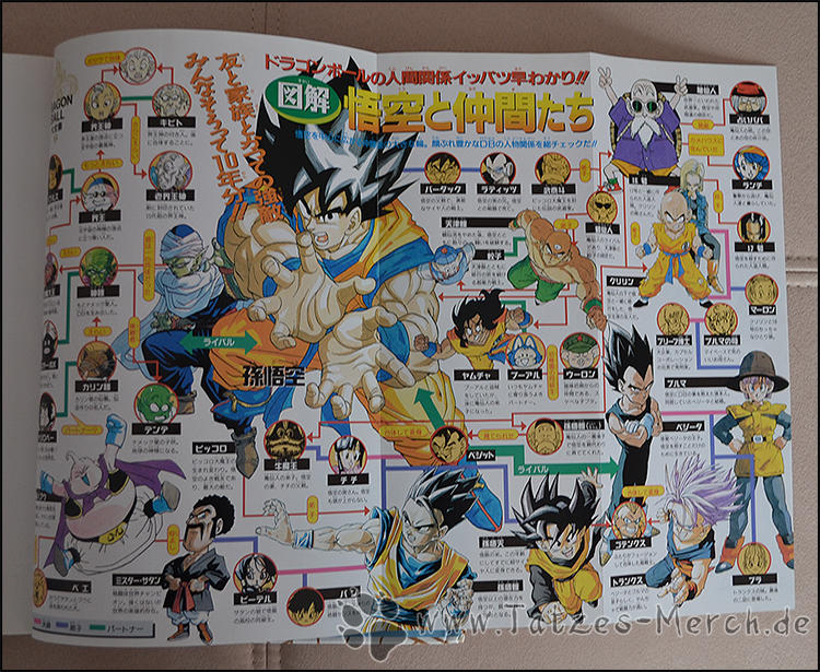 Wie auch schon bei Band 1 der Daizenshuu ist vorne das Coverbild als Poster eingeklebt – auf der Rückseite dieses Posters befindet sich eine Art „Beziehungslegende“, die die wichtigsten Charaktere miteinander verknüpft. So kann man z.B. rauslesen, dass Bulma und Vegeta verheiratet sind und dass Trunks und Bra ihre Kinder sind, oder dass Yamchu, Tenshinhan und Krillin Freunde zu Son-Goku sind usw.