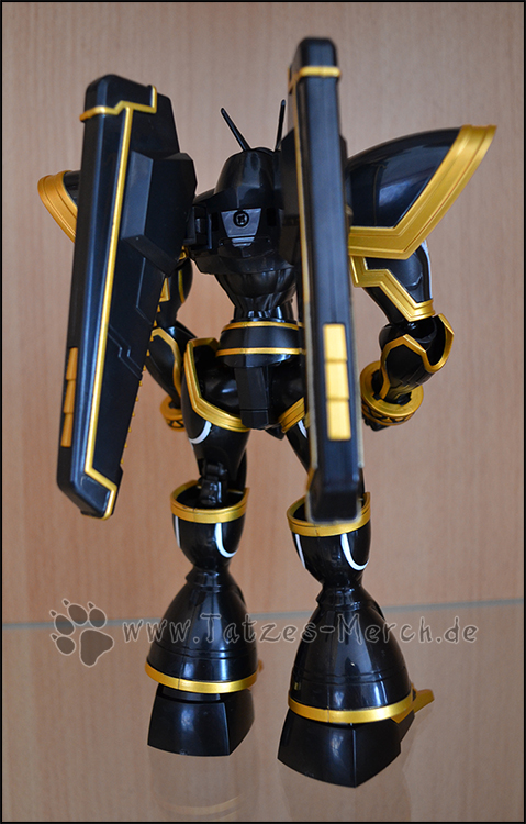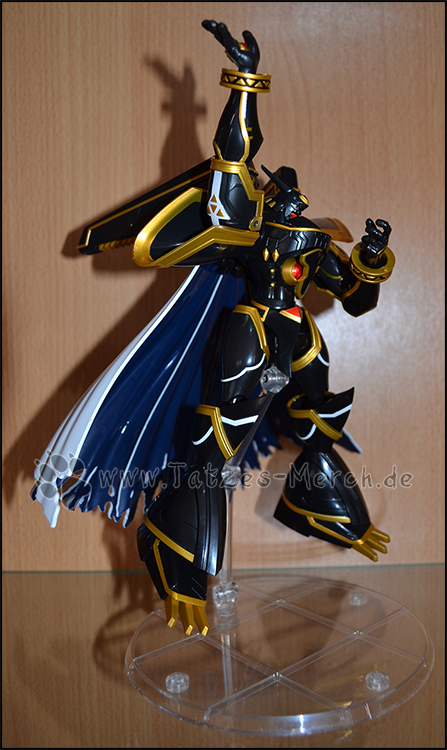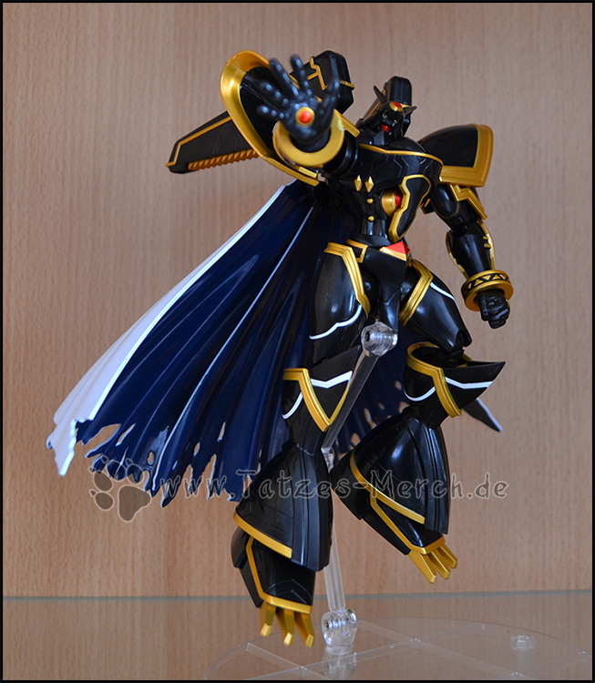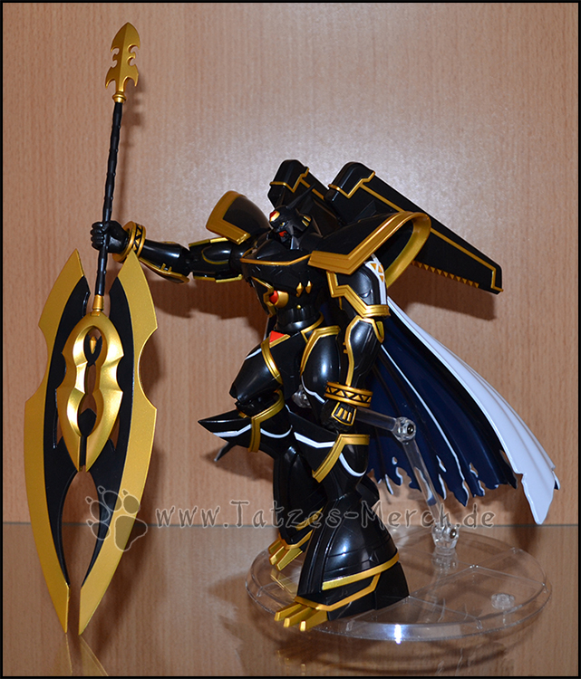 Leider ist es ohne Ständer auch nur schwer zu positionieren, weil es – wie Dukemon auch – durch den Mantel nach hinten zu kippen droht.
