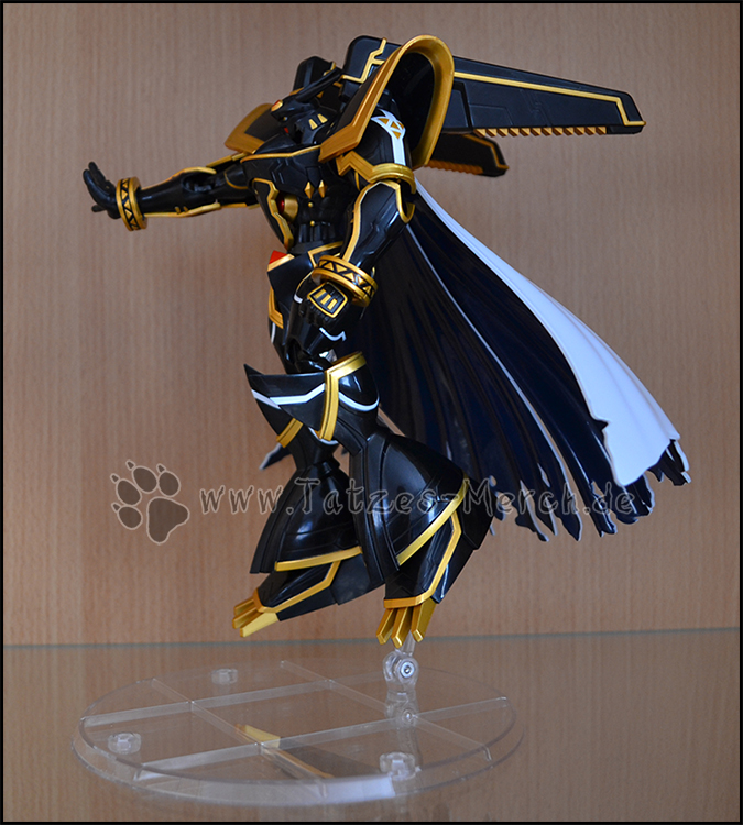 Was die Bewegungsfreiheit angeht, ist Alphamon etwas eingeschränkt – die Scharniere lassen sich teils nur schwer bewegen und die Arme sind, durch die vielen Rüstungsteile die sich selbst gerne im Weg sind, schlecht zu positionieren.